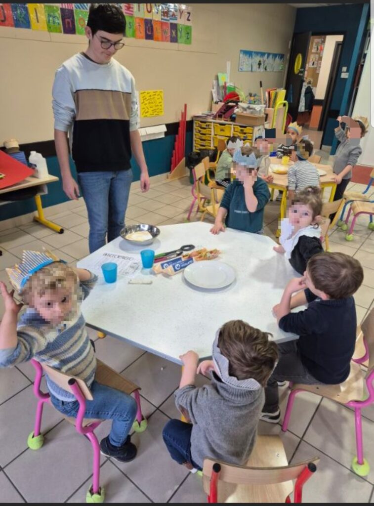 🎉 Courant janvier, les plus petits de l’école ont mis la main à la pâte lors d’un atelier cuisine pour préparer la délicieuse galette des rois 👑🥧.Après la préparation, place à la dégustation 😋 !Un beau moment de partage où les enfants ont pu porter fièrement leurs magnifiques couronnes, fabriquées en classe, et célébrer ensemble…