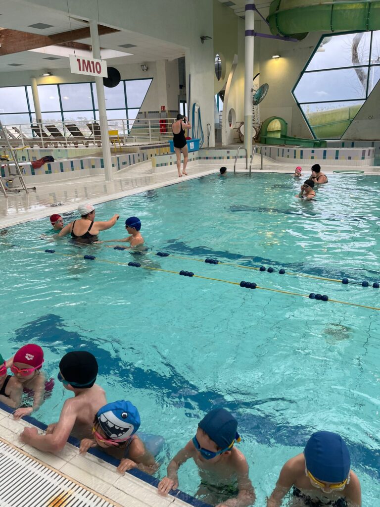 Pas à pas, les enfants apprennent à être plus à l’aise dans l’eau, à flotter, à se déplacer… le tout dans une ambiance joyeuse et motivante. Entre rires, défis et progrès visibles, ces séances sont très attendues par les élèves.